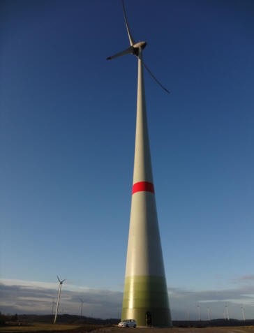 Diese Anlage ist 138 m hoch, die Rotoren sind 41 m lang, sie haben