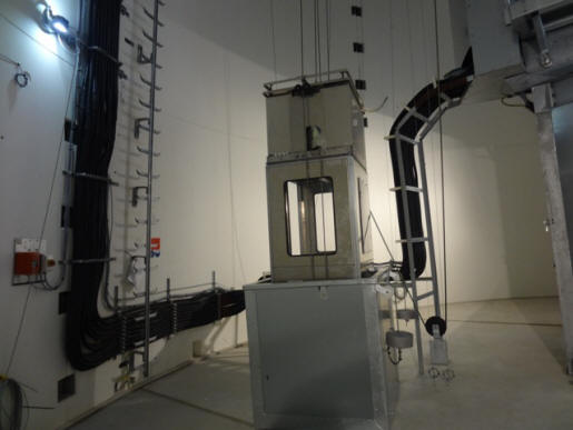 Der Förderkorb kann 2 bis 3 Personen gleichzeitig in die Höhe befördern. Etwa acht Minuten